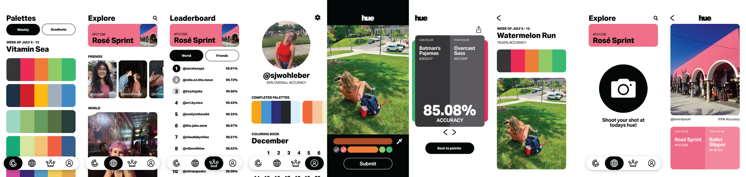 Hue is a social photo-sharing game that turns daily color prompts into real-world challenges. Each day, players get a hex-coded swatch, snap a photo to match it, and use the eyedropper tool to test their accuracy. Scores, leaderboards, and alternative palettes keep the hunt competitive and fun. Designed for teens and young adults, Hue encourages exploration, creativity, and connection beyond endless scrolling. With a clean, photo-first interface, it transforms everyday colors into playful moments of discovery.