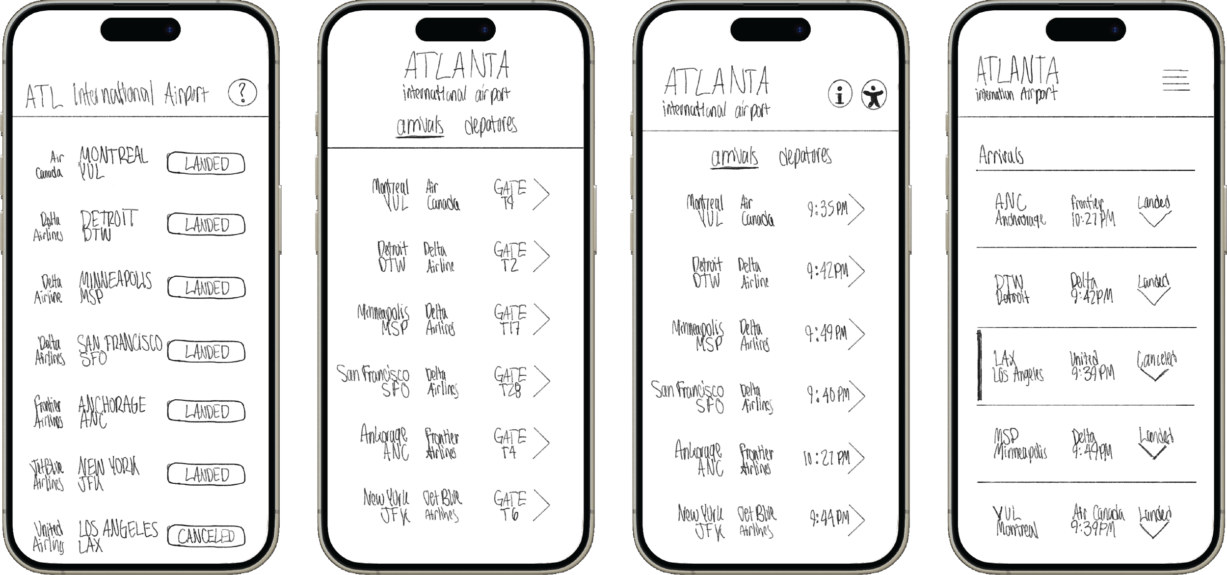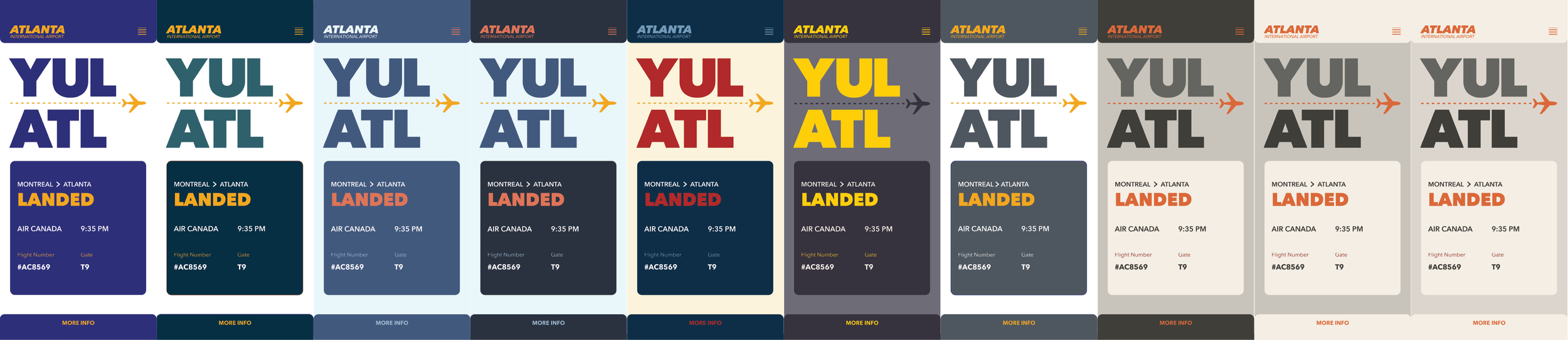 In researching six different airport interfaces, I noticed a recurring issue with legibility and spacing. Some screens were so spread out they only showed one flight at a time, while others were overly compact and difficult to read.